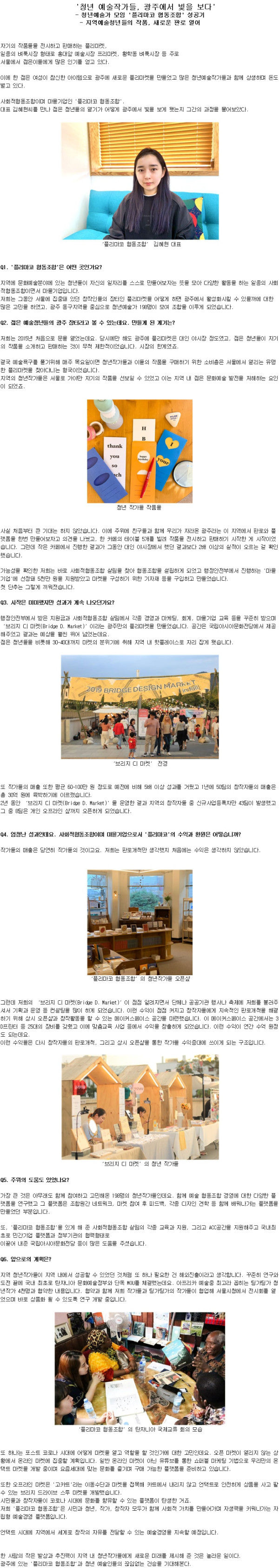 광주에 있는 '플리마코 협동조합'과 청년 예술인들의 끊임없는 건승을 기대해본다.