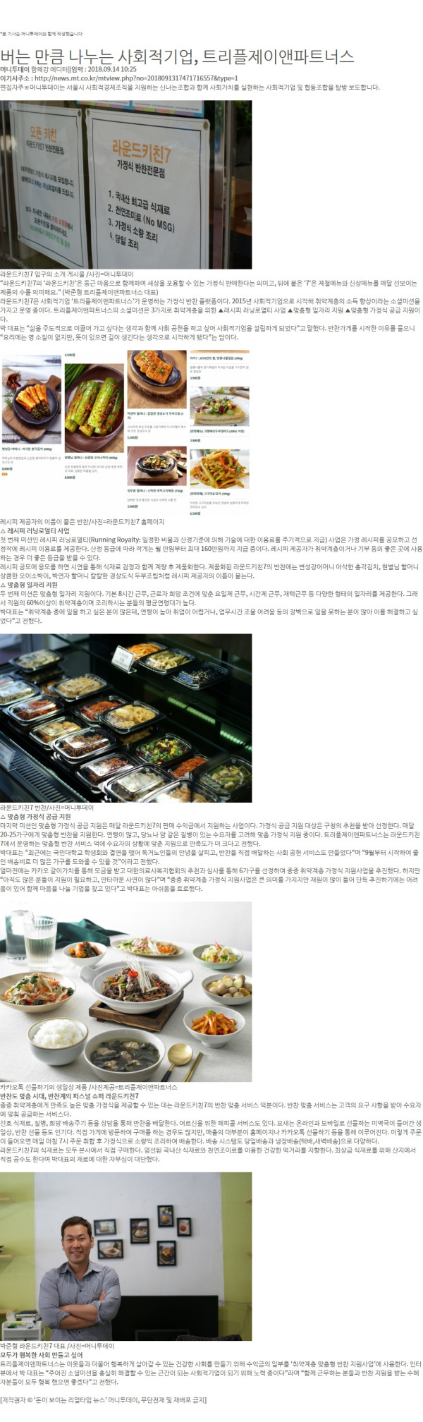 “라운드키친7의 '라운드키친'은 둥근 마음으로 함께하며 세상을 포용할 수 있는 가정식 판매한다는 의미고, 뒤에 붙은 '7'은 제철메뉴와 신상메뉴를 매달 선보이는 제품의 수를 의미해요.” (박준형 트리플제이앤파트너스 대표)