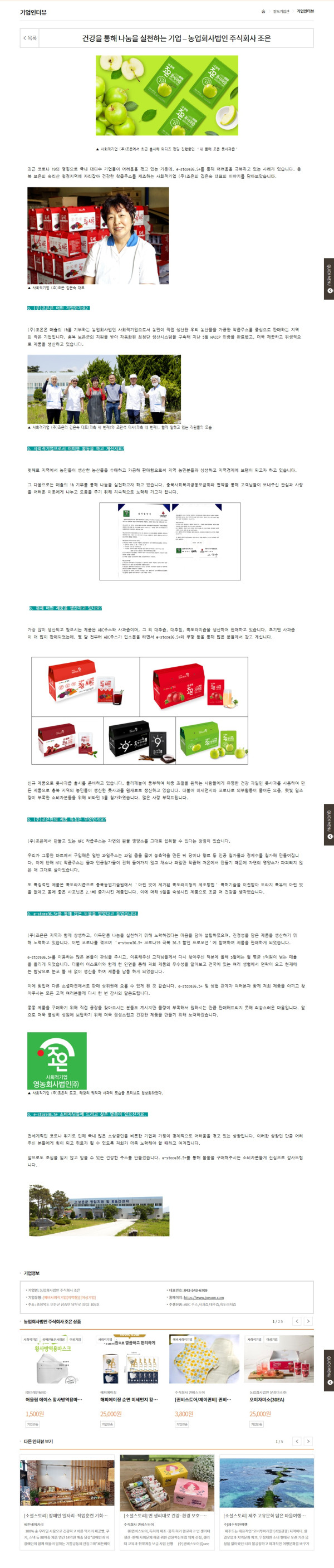 [기업소개] 건강을 통해 나눔을 실천하는 기업 – 농업회사법인 주식회사 조은 (한국사회적기업진흥원)