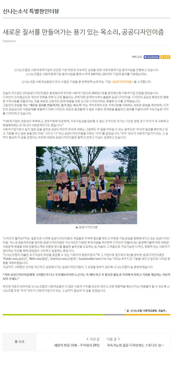 [기업소개] 새로운 질서를 만들어가는 용기 있는 목소리 - 공공디자인이즘 (신나는조합)