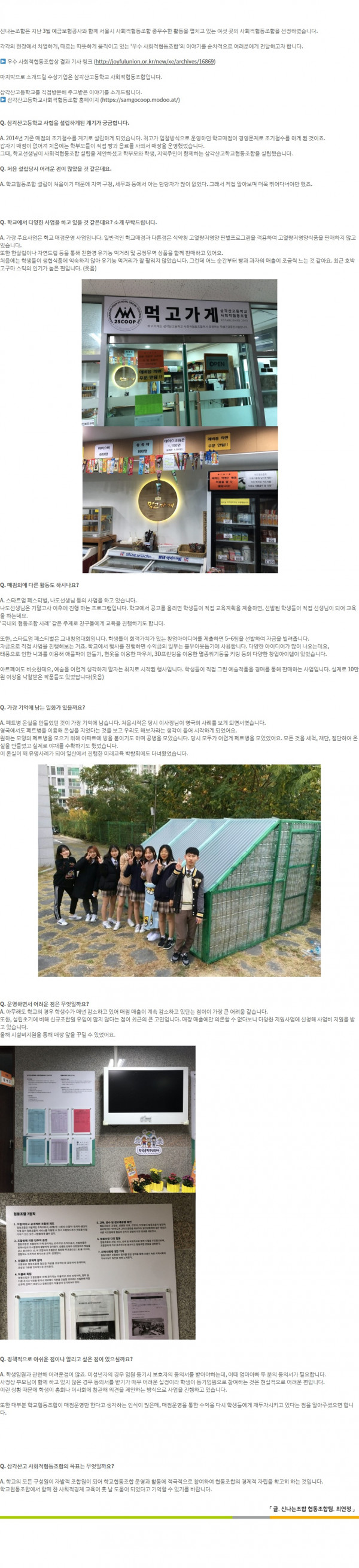 [기업소개] 학교에서 만나는 사회적경제 - 삼각산고등학교 사회적협동조합 (신나는조합)