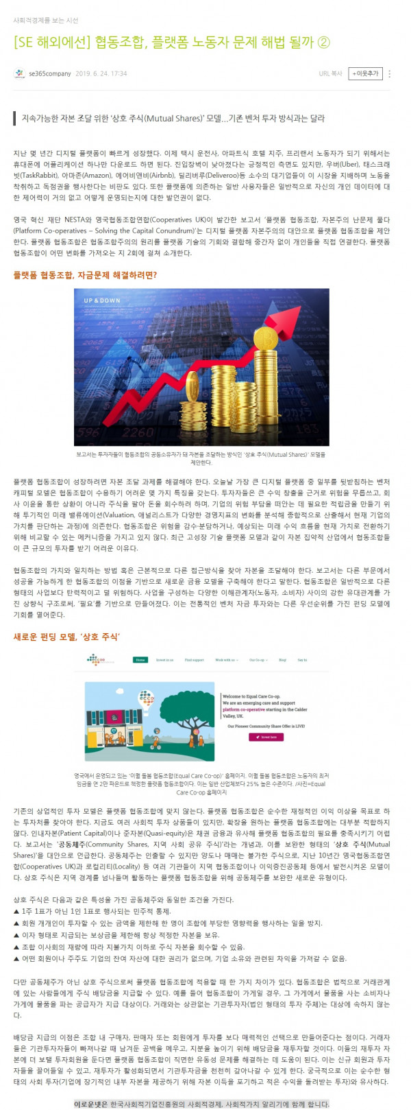 협동조합, 플랫폼 노동자 문제 해법 될까 (한국사회적기업진흥원)