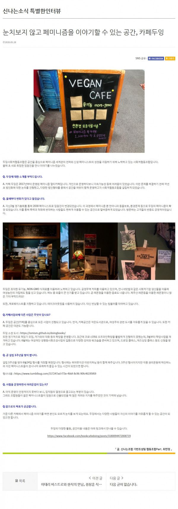 [기업소개] 눈치보지 않고 페미니즘을 이야기할 수 있는 공간 - 카페두잉 (신나는조합)