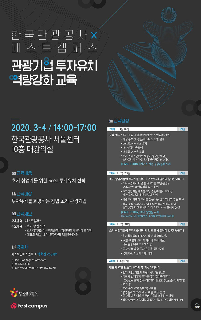 [교육] 한국관광공사X패스트캠퍼스 관광기업 투자유치 역량강화 교육 신청접수 안내(접수마감 3/10) | 관광기업지원센터