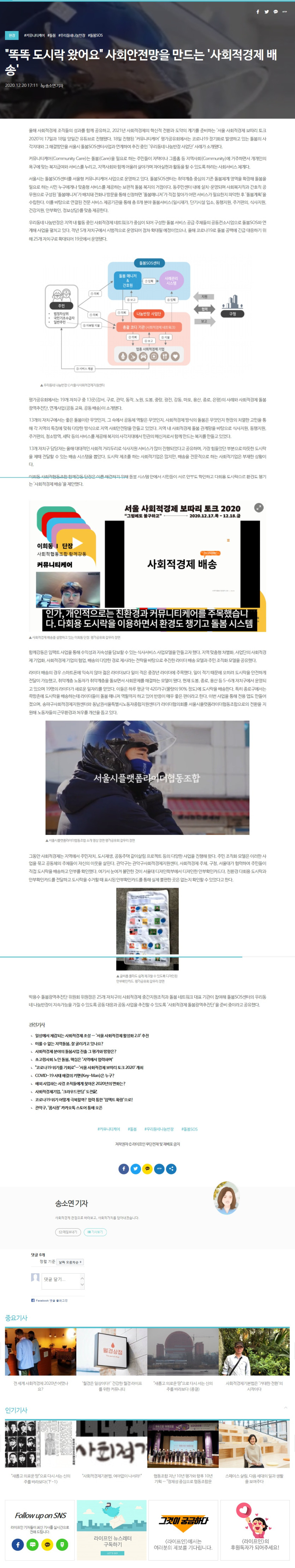 올해 사회적경제 조직들의 성과를 함께 공유하고, 2021년 사회적경제의 혁신적 전환과 도약의 계기를 준비하는 '서울 사회적경제 보따리 토크 2020'이 17일과 18일 양일간 유튜브로 진행됐다. 18일 진행된 '커뮤니티케어' 평가공유회에서는 코로나19 장기화로 발생하고 있는 돌봄의 사각지대와 그 해결방안을 서울시 돌봄SOS센터사업과 연계하여 추진 중인 '우리동네 나눔반장 사업단' 사례가 소개됐다.