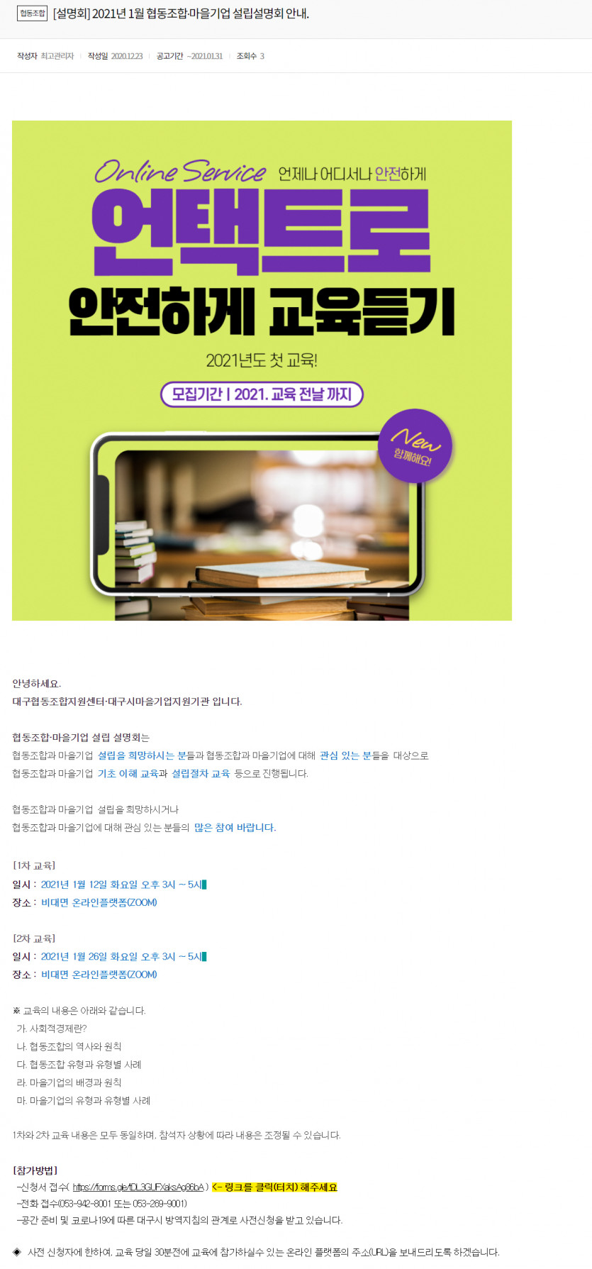 [설명회] 2021년 1월 협동조합ㆍ마을기업 설립설명회 온라인 개최 (접수마감 2021.01.11까지) | 커뮤니티와경제