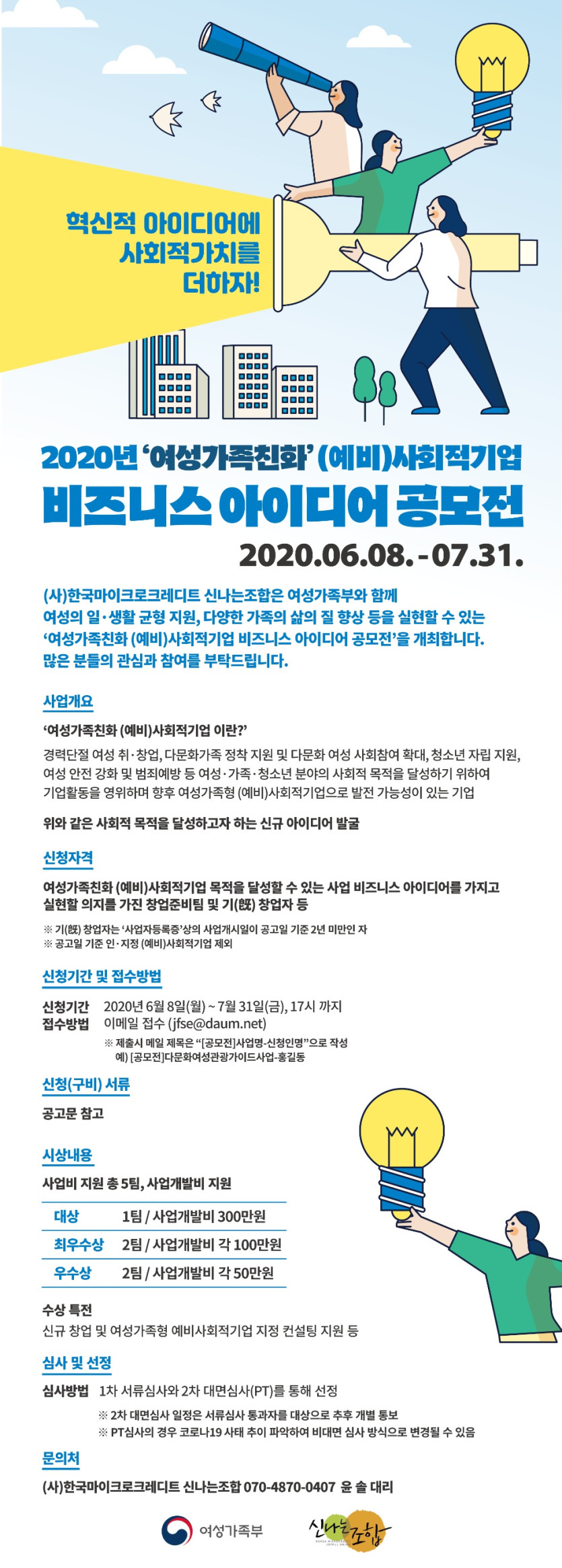 [공모전] 2020년 여성가족친화 (예비)사회적기업 비즈니스 아이디어 공모전 (접수마감 7.31까지) | 신나는조합