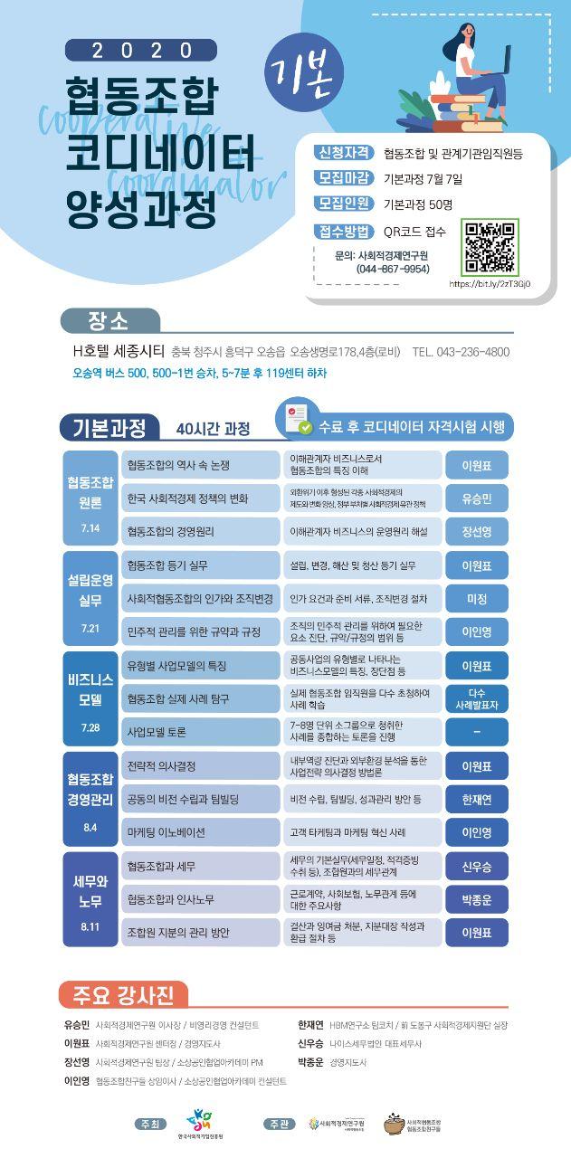 [교육] 협동조합 맞춤형 전문가(코디네이터) 양성과정(기본과정, 심화과정) 수강생 모집 공고문 (한국사회적기업진흥원)