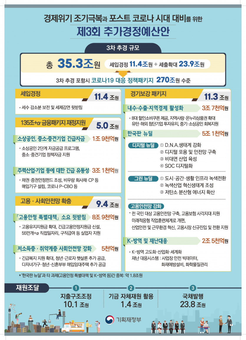 [언론보도] 2020년도 제3회 추가경정예산안 (기획재정부) 지역혁신경제연대 0 8266 2020.06.06 10:59 http://www.moef.go.kr/nw/nes/detailNesDtaView.do?menuNo=4010100&search… + 3099 2020.06.06 10:59 2. 2020년도 제3회 추경예산안 브리핑자료 최종★★.hwp (116.0K) + 441 2020년도 제3회 추가경정예산안