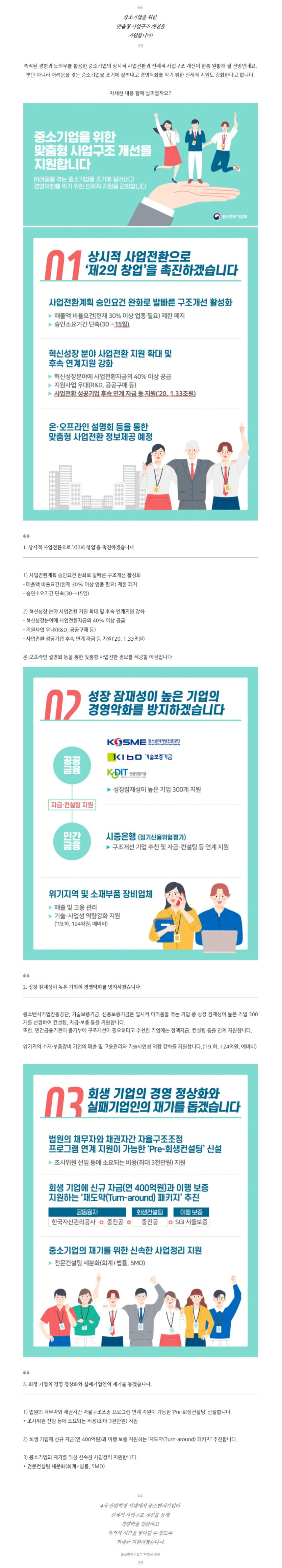 중소기업을 위한 맞춤형 사업구조 개선을 지원합니다 (중소벤처기업부) 지역혁신경제연대 0 8426 2019.09.21 08:04 https://blog.naver.com/bizinfo1357/221652161573 + 3594 중소기업을 위한 맞춤형 사업구조 개선을 지원합니다
