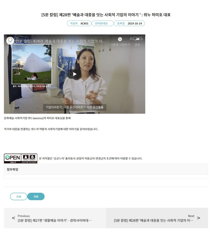 예술과 대중을 잇는 사회적 기업의 이야기 (한국문화관광연구원) 지역혁신경제연대 0 8507 2019.10.17 07:47 https://policydb.kcti.re.kr/#/columnDetail?bbstypecd=3002023&postno=20… + 3306 예술과 대중을 잇는 사회적 기업의 이야기