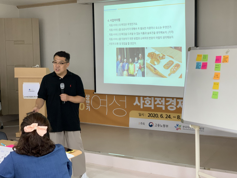 2020년도 사회적경제 창업입문과정(상반기) - 제4강(7월8일) 지역혁신경제연대 0 1859 2020.08.02 10:28 네번째 시간은 여성 창업 관심 주제(사업아이템) 발굴 이라는 주제로 진행되었습니다