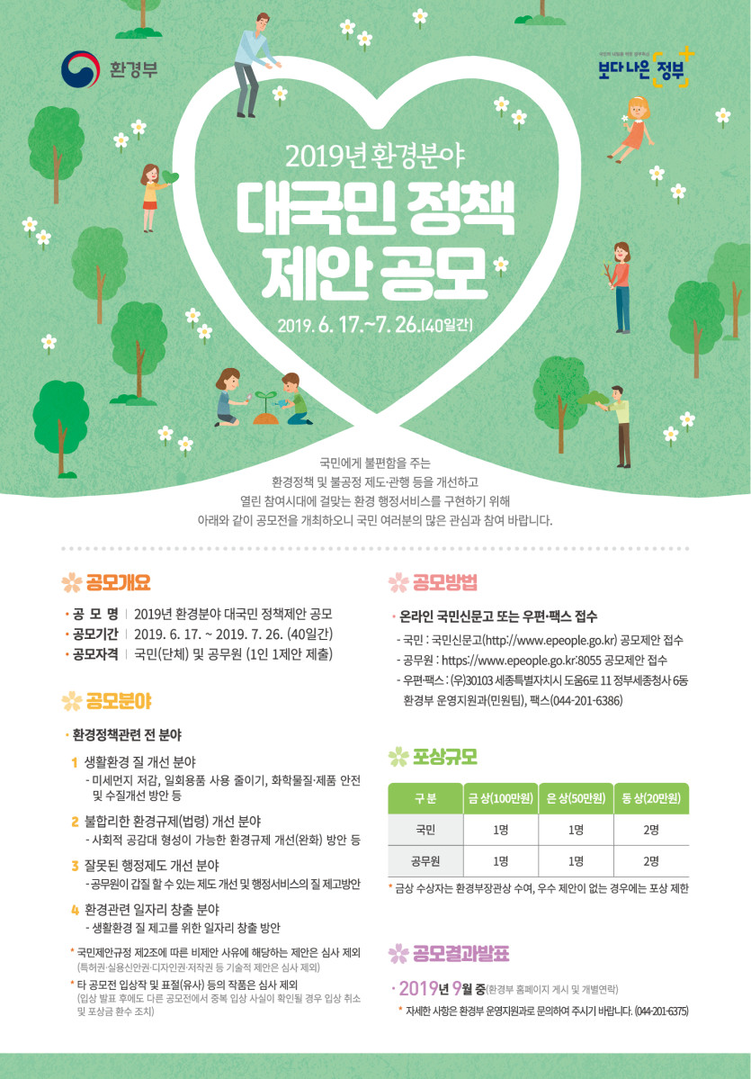 환경분야 제도개선 대국민 정책제안 공모 (접수마감 7.26까지) (환경부)
