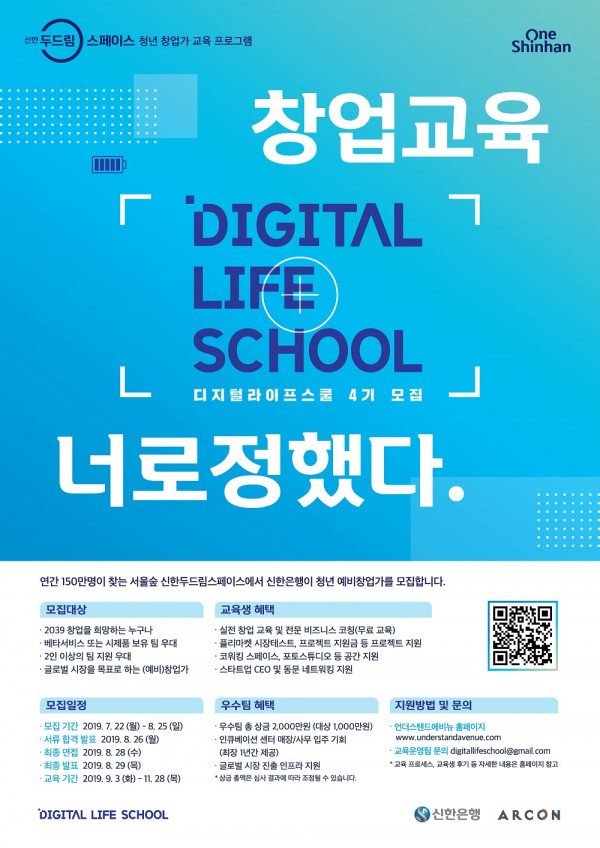 [창업지원] 신한두드림스페이스 청년 창업교육 디지털라이프스쿨 4기 교육 실시 (접수마감 8.25까지) (신한두드림스페이스)