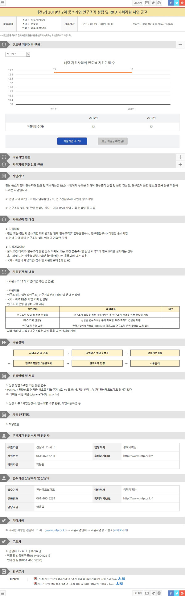 2019년 2차 중소기업 연구조직 설립 및 R&D 기획지원 사업 공고 (접수마감 8.30까지) (전남테크노파크)