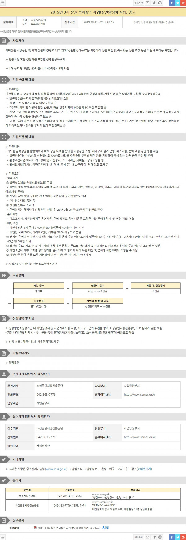 2019년 3차 상권 르네상스 사업(상권활성화 사업) 공고 (접수마감 9.16까지) (소상공인시장진흥공단)