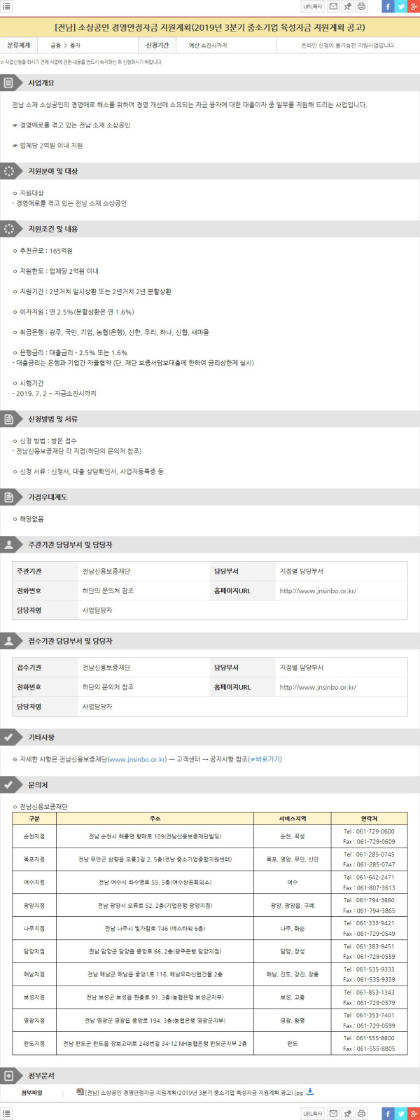[자금지원] 소상공인 경영안정자금 지원계획(2019년 3분기 중소기업 육성자금 지원계획 공고) (접수마감 예산소진시까지) (전…