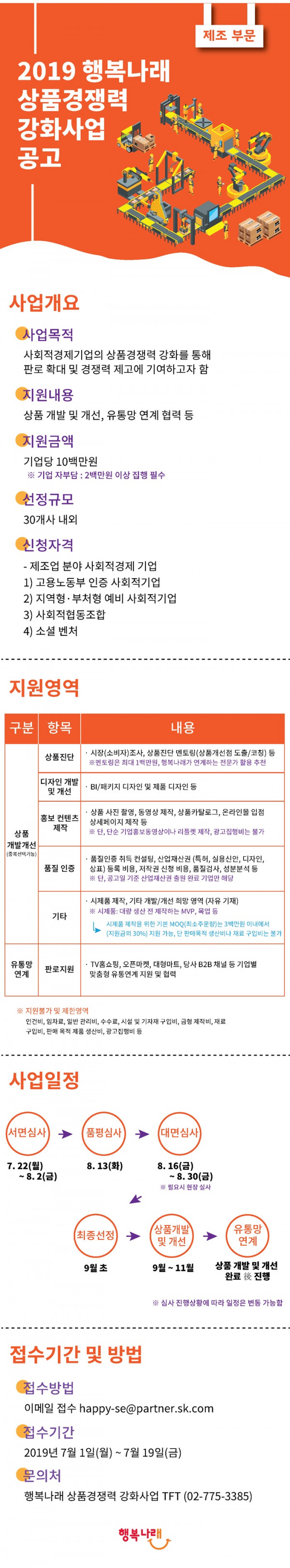 [지원사업] 2019 행복나래 상품경쟁력 강화사업 공고 [ 제조 부문 ] (접수마감 7.19까지) (행복나래(주))
