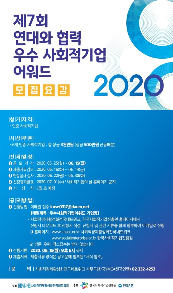 [모집공고] 2020년 제7회 연대와 협력 우수 사회적기업 어워드 모집 공고 (접수마감 6.15까지) | 사회적경제활성화전국네…