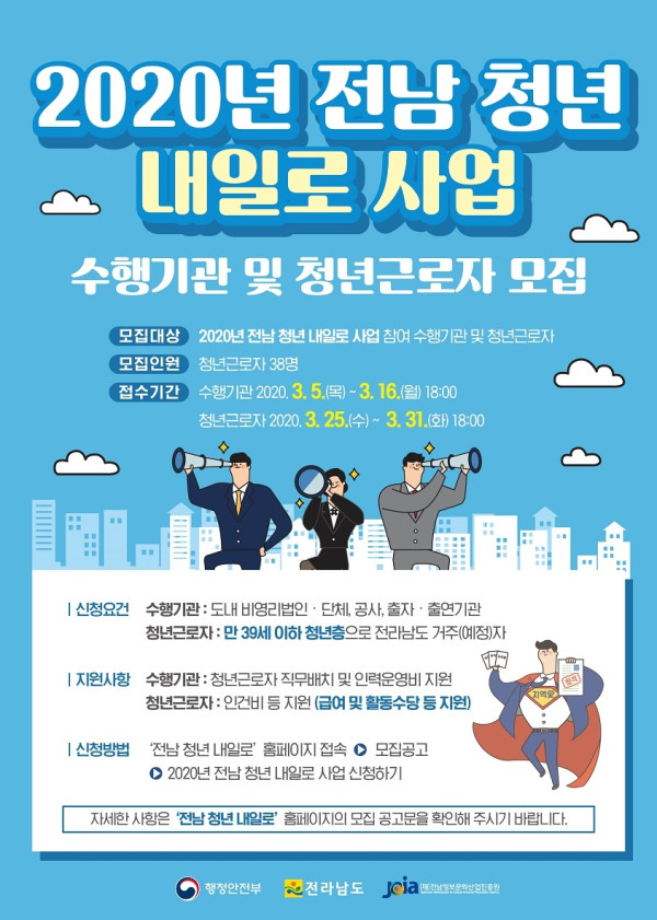 [모집공고] 「2020년도 전남 청년 내일로 사업」 수행기관 및 청년근로자 모집 공고 (접수마감 4.6까지) | 전남정보문화산…