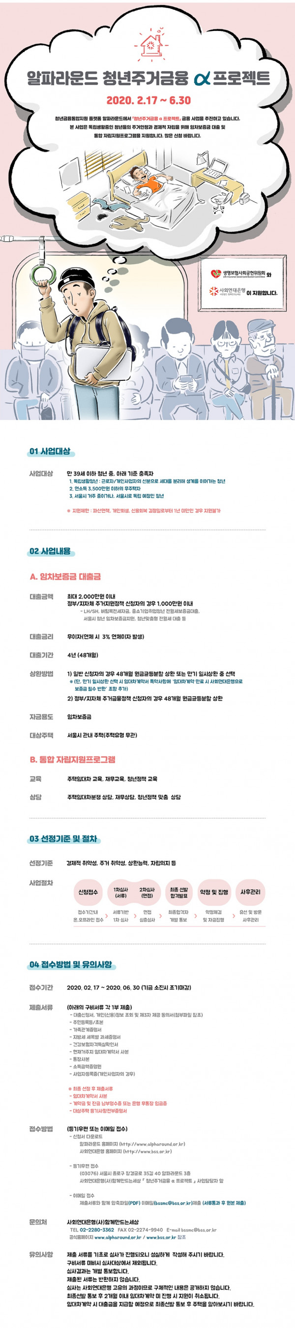 [금융지원] 알파라운드 「청년 주거금융 α프로젝트」 사업 | 사회연대은행 지역혁신경제연대 0 8515 2020.03.11 09:03 http://www.bss.or.kr/load.asp?subPage=115.view&idx=2406 + 2926 2020.03.11 09:03 무상거주사실확인서0.hwp (14.0K) + 349 2020.03.11 09:03 청년주거금융α프로젝트_대출공고문.hwp (309.0K) + 355 2020.03.11 09:03 청년주거금융α프로젝트_대출신청서.hwp (269.5K) + 354 [금융지원] 알파라운드 「청년 주거금융 α프로젝트」 사업 | 사회연대은행