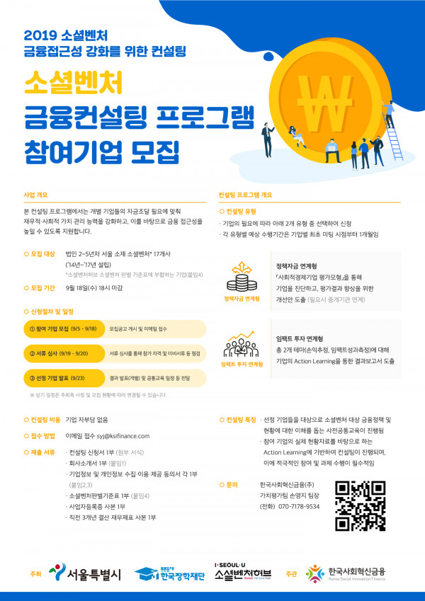 소셜벤처 금융컨설팅 프로그램 참여기업 모집 (접수마감 9.18까지) (한국사회혁신금융)