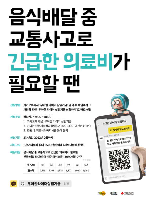 [지원사업] 우아한살핌기금 - 라이더 의료비 지원사업 (2020년 2월까지) | 신나는조합, 배달의민족, 사랑의열매